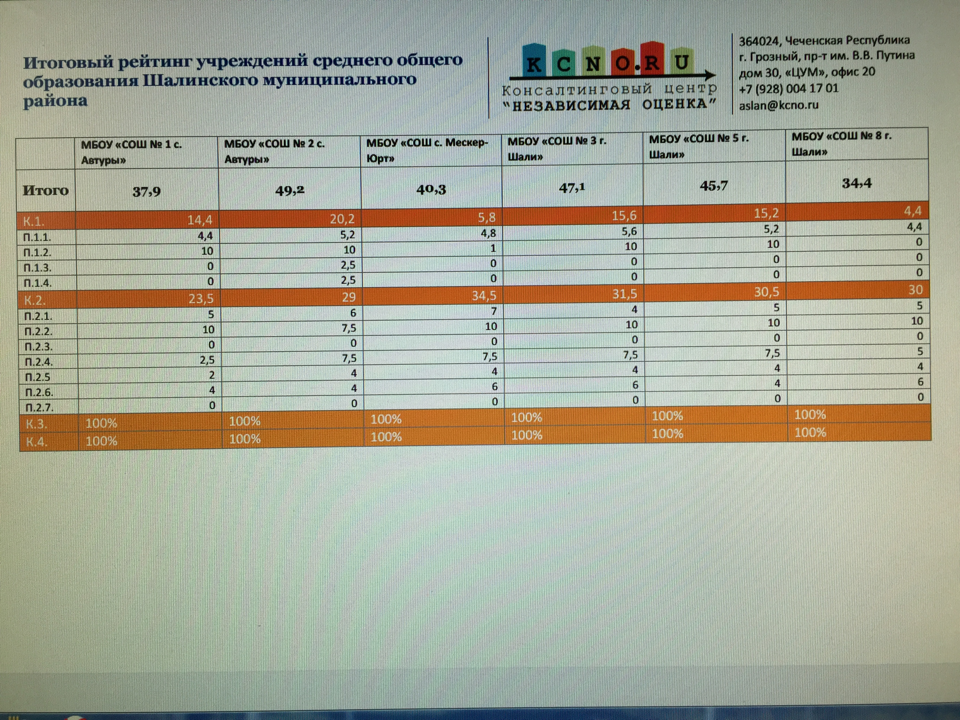 Наша школа заняла 1 место в итоговом рейтинге учреждений среднего общего образования Шалинского муниципального района